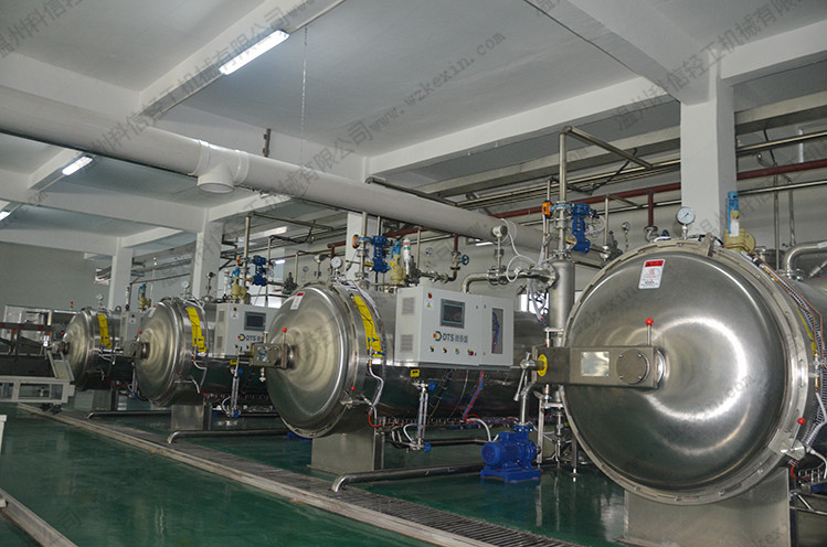 科信機械生產的殺菌鍋是一種間歇工熱水殺菌設備,它用高溫壓的熱水作加熱介質,對已包裝的食品進行滅菌。在滅菌的過程中,為使食品迅速均勻受熱,可采限熱水強制循環、食品包裝物回轉或熱水噴淋等措施,從而對食品進行高溫短時間滅菌這樣可使食品保持更佳的品質、風味和色澤,更大限度的保持食品的營養成份。